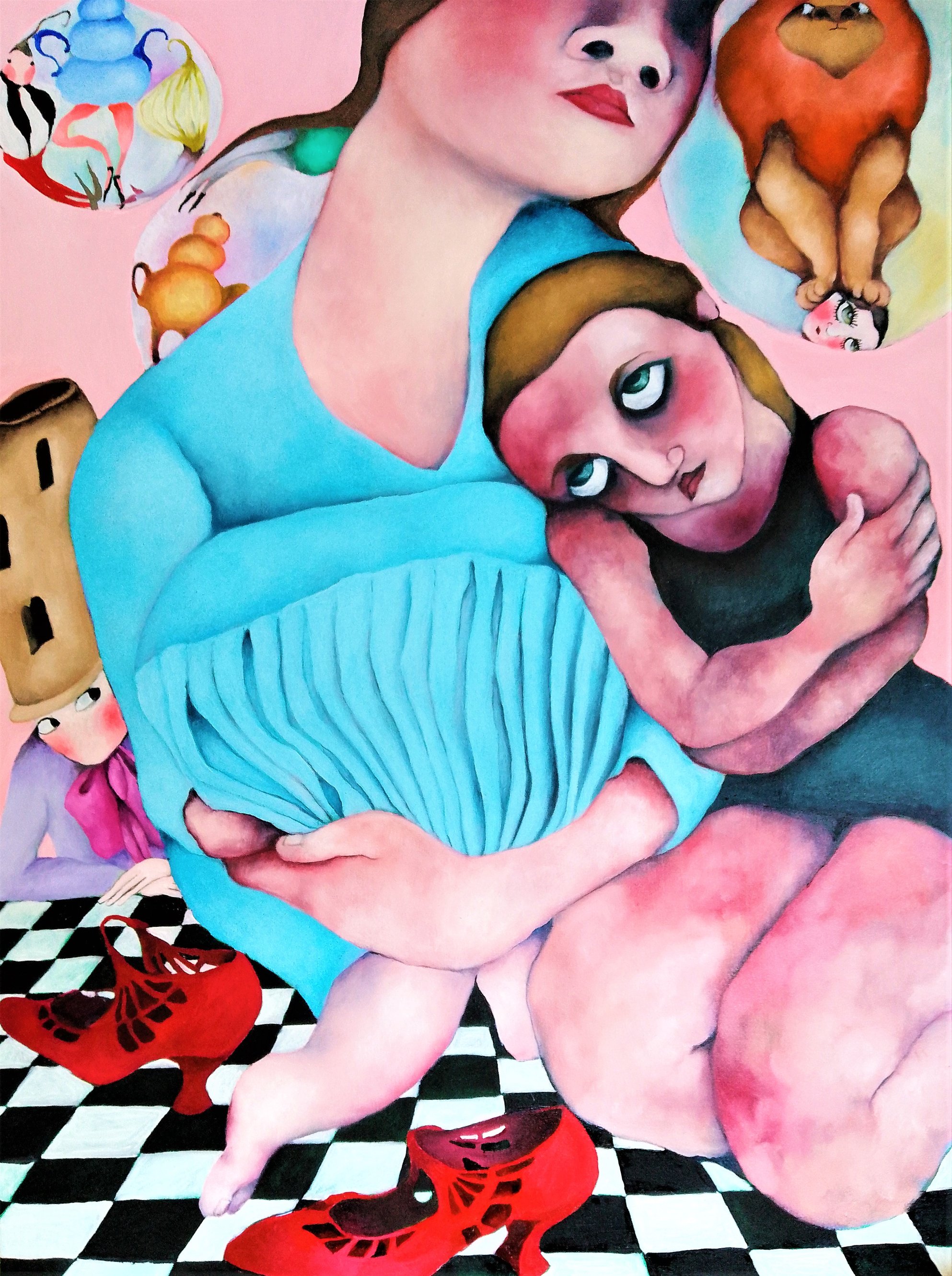 Amy Heath (b. 1974, San Francisco) came to London to study art at 18. She holds a BA (Hons) in Painting from Chelsea College of Art (1994–97) and an MA in Drawing from Wimbledon School of Art (2001–03). Her practice spans painting, works on paper, and illustration, rooted in magical realism, feminism, and imaginative storytelling about the female experience. She served as artist's model for Dame Paula Rego (1998–99) — a formative experience that profoundly influenced her approach. She is a member of the Society of Women Artists and has exhibited at their Annual Open Exhibitions (2022–2025). She was longlisted for the VAA Professional Artist's Award (2023) and shortlisted for the Women in Art Prize (2025).