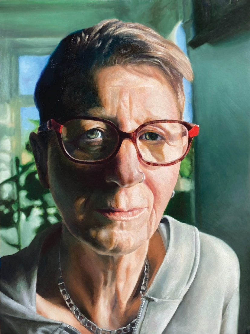 Kaye Hodges is a portrait and figurative artist based in Mid Wales who studied Illustration at the University of Wales (Gwent College of Art) and worked as a freelance illustrator with Artist Partners, a London-based agency, on commissions for books, magazines, advertising, and children's books. She specialises in capturing both physical likeness and the inner persona of her subjects, with particular interest in how light shapes a work. Her exhibition history includes the National Portrait Gallery Portrait Award (1981, 1984, and 2010), the Daily Mail 'Not the Turner Prize' exhibition at the Mall Galleries, and the 2017 Sky Arts Portrait Artist of the Year competition. She is a member of the Society of Graphic Fine Arts and The Drawing Society, and has exhibited with the Society of Women Artists, Royal Society of British Artists, Royal Birmingham Society of Artists, and others. She previously taught art at Cranbrook School in Kent and has completed mural projects in hospitals, schools, sports clubs, and private homes in England.