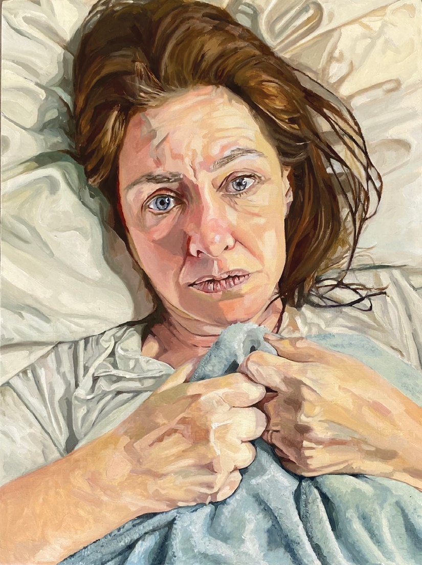Sara Gregory is a figurative painter who explores the emotional dimensions of women's inner lives through portraiture and symbolic imagery. Her practice focuses on what is felt but rarely spoken, employing stillness, gaze, and subtle body language to create narratives that are personally resonant yet open to interpretation. She frequently works with self-portraiture and images of solitary female figures, deliberately creating space for viewers to engage with their own experiences. She originally studied Fine Art at Stourbridge College of Art and taught art for 25 years before leaving to pursue her practice full-time. Her menopause series, documenting the effects of perimenopause on her mind and body over seven years, gained international attention.
