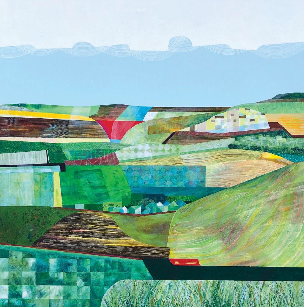 Janette Ralph is a contemporary artist from the North of England who earned her degree in Communication Design from Art School in Manchester and worked as a graphic designer for over 25 years, including positions at high-profile London agencies, before becoming a full-time professional artist. Her graphic design background directly influences her painting approach: she naturally flattens a scene, breaking it down into individual elements representing the contents through pattern, texture, feeling and colour. She works primarily in acrylic on canvas, favouring larger formats, creating detailed landscapes where what appears to be a simple landscape reveals a patchwork of intense painted detail. She explores various finishing techniques, layering colours and removing sections to create depth and visual interest, and is represented by Langham Gallery, London.